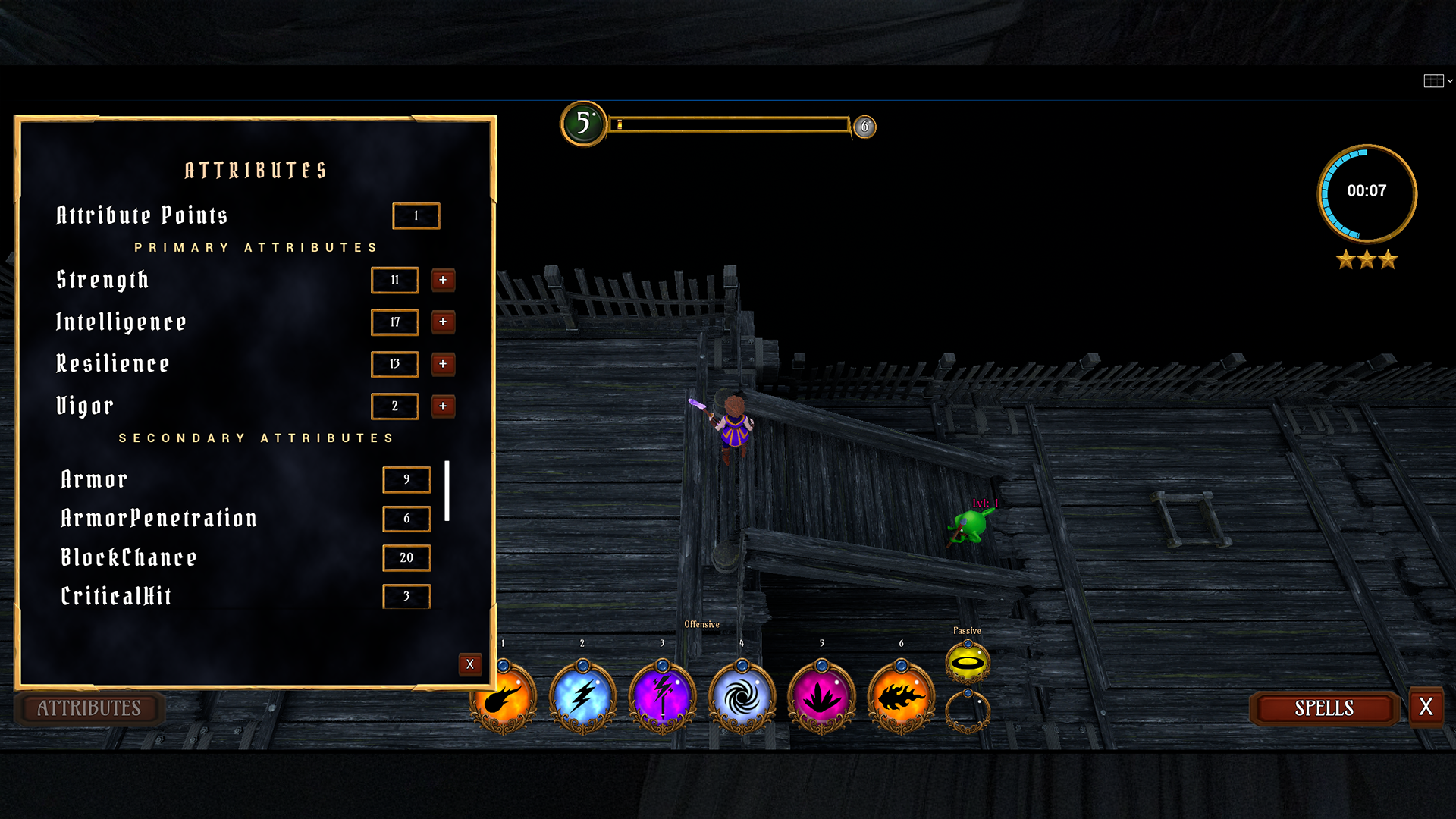- Master Your Build – Level-ups grant attribute points you can drop into Power, Resilience, Crit Chance, and more. Lean into glass-cannon burst damage, become an unbreakable bulwark, or craft a balanced battlemage—every run can feel different.